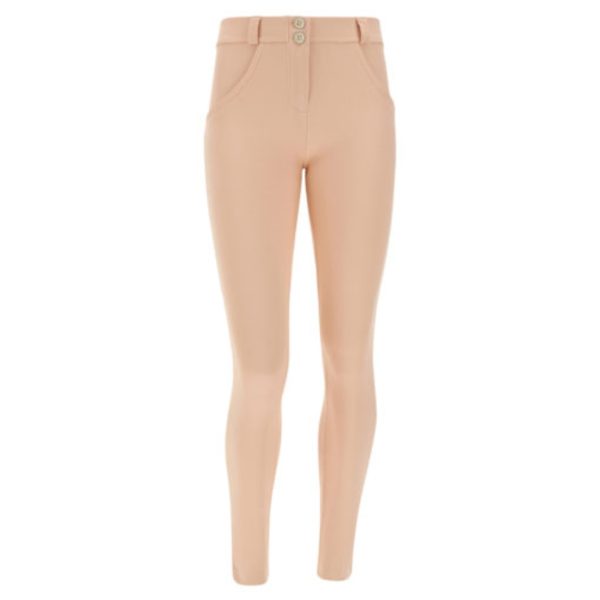 Pastel skinny-fit shaping trousers from the WR.UP® line in stretch jersey drill. Two buttons fasten the regular waist. Regular-length leg. A small Freddy logo on the back pocket and the lettering on one of the X-shaped belt loops complete the look in style. The delicate, summery colour helps accent your femininity, which is further enhanced by the shaping power of Freddy's patented WR.UP® technology. This special system of inserts and seams shapes, sculpts and supports your curves, for a knock-out silhouette.