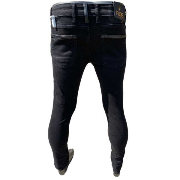 The Rhynco Tapered Sabre Fit is crafted from a black comfort stretch denim, and has been given a light wash with heavy wax painted areas creating a subtle sheen
